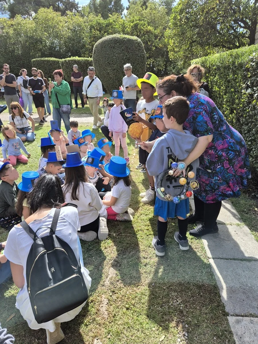 A photo from the amazing day we had at the Athens Observatory where we “performed” my book, engaged in arts and crafts about the planets and observed the Sun through a special telescope.